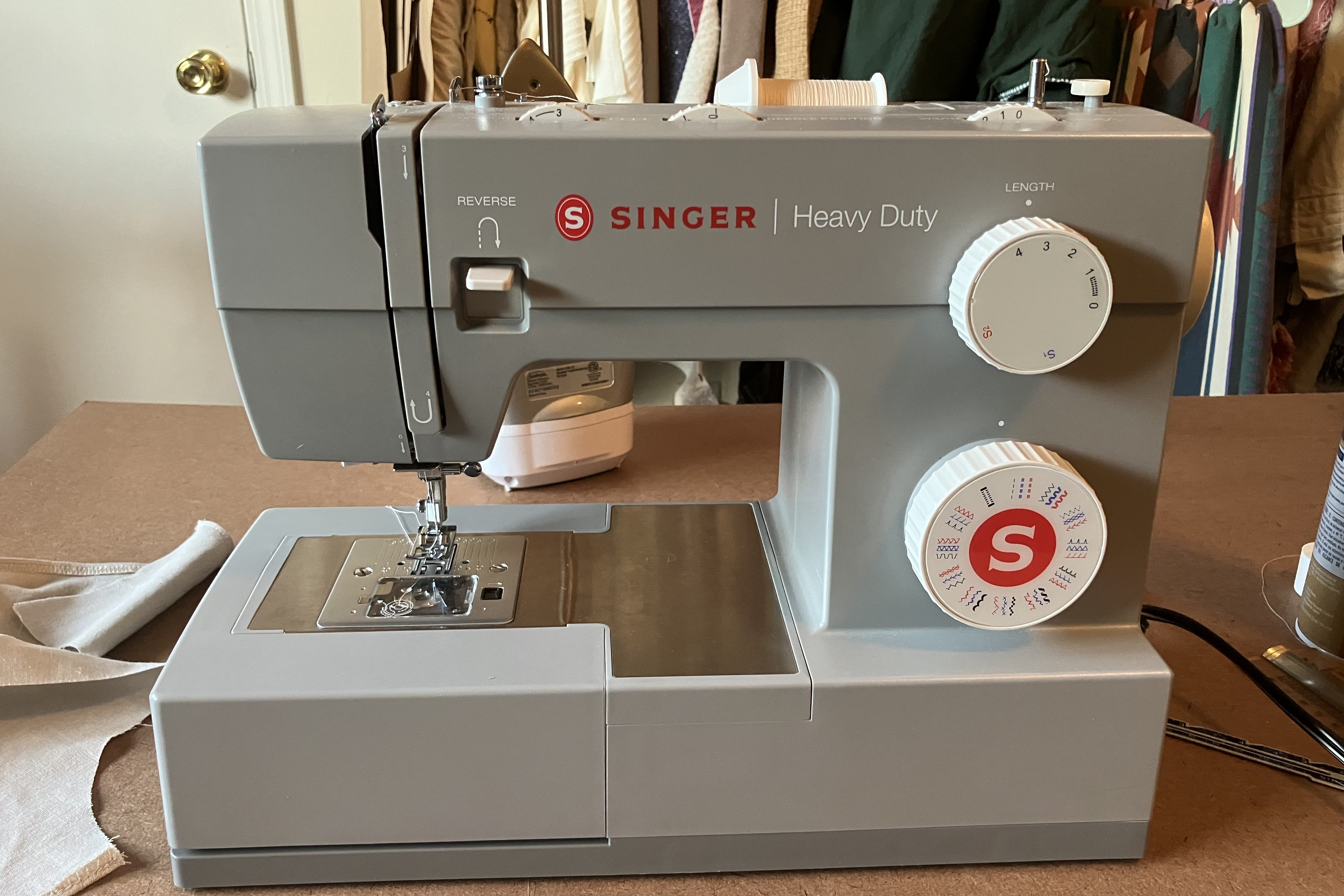 One of our main workhorses. This is only a straight/zigzag machine. Basic, but extremely reliable.